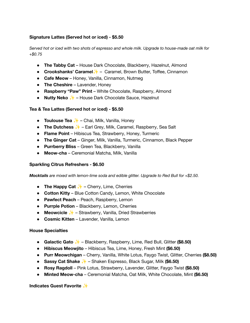 Happy Cat Cafe Menu (2025 Update)